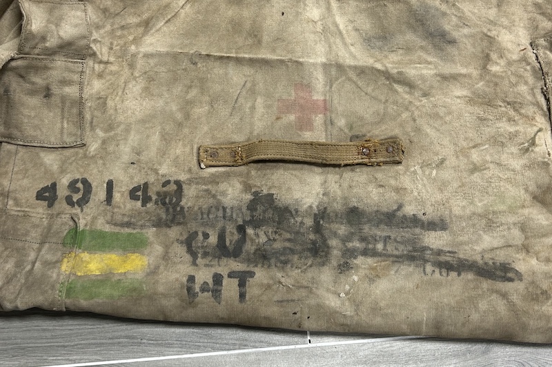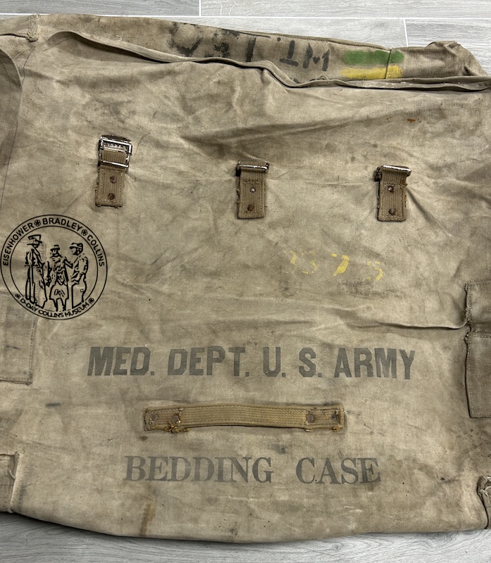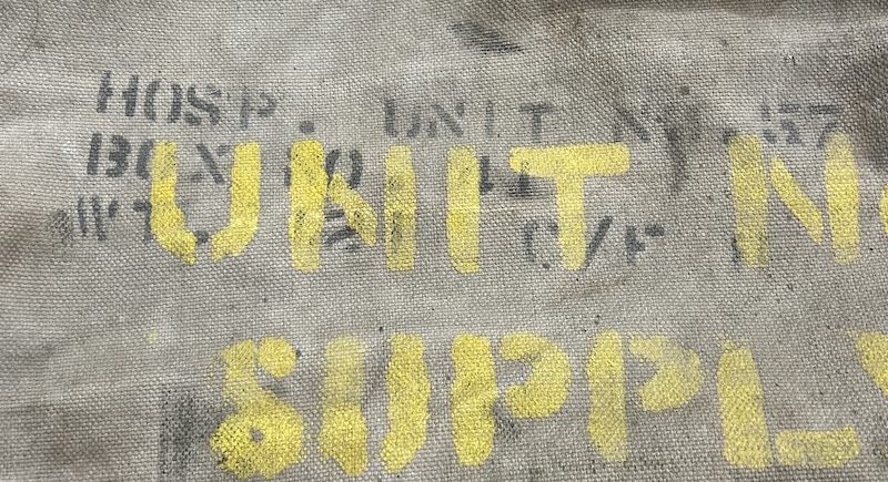 Gros sac à lit de camp avec marquages et code bar du 53 field hospital.